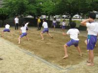会場である本校の土俵などの準備も整い、選手たちの最後の練習は、砂場で行われました。