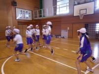 一拍子跳び(前、後ろ)、かけ足跳び(前、後ろ)、あやとび、かけ足あやとび、二重跳び、一分間連続跳び、長縄八の字ジャンプをしました。