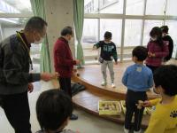 地域のおじいさん、おばあさんとお父さん、お母さんに昔の遊びを教えてもらいました。子どもたちは、練習してもできなかったところのこつを教えてもらって、とても上手にできるようになり、大喜びでした。