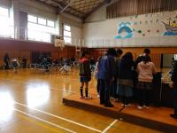 今年一番の寒さの中、小学校生活最後のマラソン大会を行いました。開会式では、クラス代表児童が大会への意気込みを発表しました。