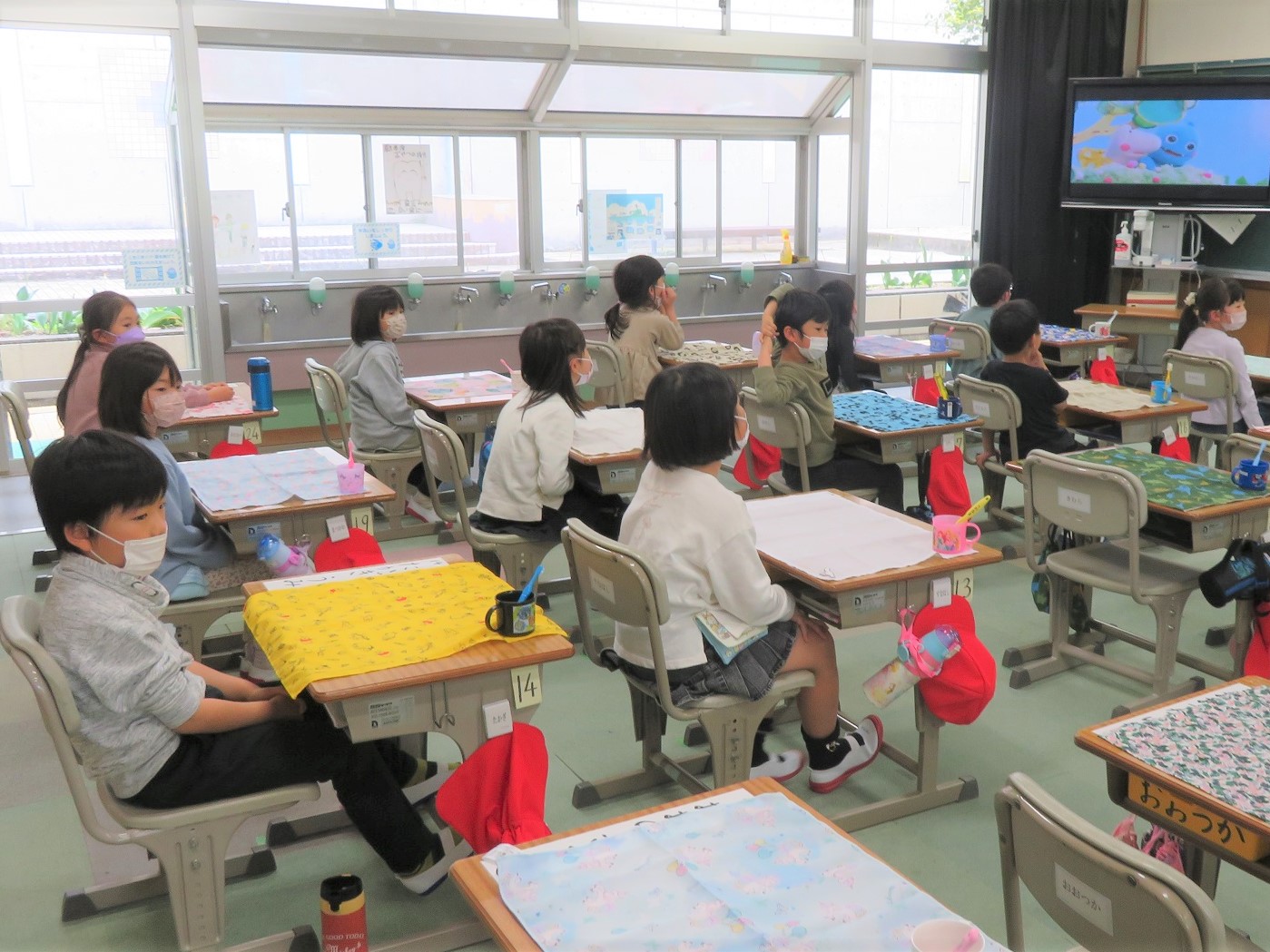 今日から1年生の給食が始まりました。小学校最初の給食です。