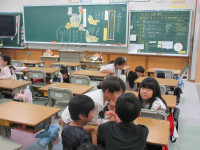3年生は理科の明かりをつける学習です。乾電池と豆電球をどのようにつなぐと明かりがつくのでしょう。実験を繰り返します。