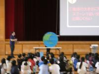 今日は4年生の社会科の学習で、「水のおはなし教室」が体育館で行われました。松山市公営企業局の方々にご来校いただき、水について、いろいろなことを教えていただきました。