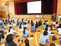 2023年5月23日 12時16分今日は4年生の社会科の学習で、「水のおはなし教室」が体育館で行われました。松山市公営企業局の方々にご来校いただき、水について、いろいろなことを教えていただきました。