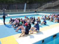 いよいよ入水!先生のお話をよく聞いて、みんなで楽しく水遊びをすることができました!