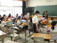 子どもたちは、発表内容に合わせて資料を拡大したり自分で作った防災グッズを提示したりして、発表の仕方を工夫していました。また、友達の発表を熱心に聞いて、防災への関心をさらに高めていました。